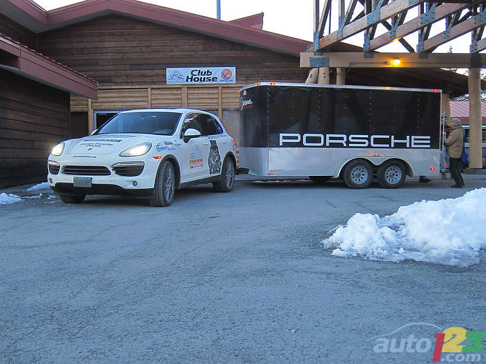 In the first part of the trip, the Cayenne Turbo was damaged in a loss of control on a slushy highway. It was towed from north of Prince George, BC, back to Vancouver and is being fixed. Total damage: $27,000.