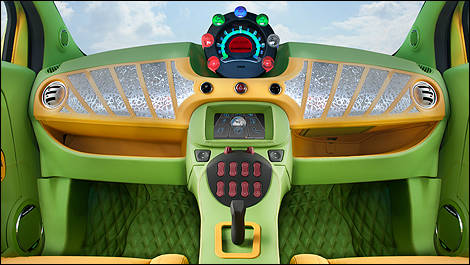 The "UC?" also features a number of technical highlights: Goodbye steering wheel, hello force-feedback joystick. The new joystick technology is supplied by German electronics specialist Rafi. Rinderknecht says: "Forget everything you have learned about joysticks so far. Finally this system provides a better steering feel and clear feedback from the road." The entire car is operated via Space Drive, a drive-by-wire system developed by Paravan, one of the leading manufacturers of handicap vehicles. Rinspeed and its partners had to master numerous challenges surrounding the electric drive system: The lithium-ion batteries come from Li-Tec-Battery in Germany, a joint venture of Evonik and Daimler AG. The efficient and reliable on-board charger is supplied by specialist Absaar; the external stationary charger comes from ABB Sécheron. Axpo Holding is yet another energy company that partnered with Rinspeed on this project. The electric heater and sphere-shaped vents were installed by the specialists from Eberspächer. Rinspeed also received support from the consortium Swiss Coop, which promotes decisive action and zero-emission mobility, and from the power plants of the Canton of Zurich that provide electricity and the required infrastructure. To save as much energy as possible the developers have placed highest priority on lightweight design: Ticona, one of the world's leading manufacturers of engineering polymers, plays a major part in achieving this objective. The lightweight lift gate comes from Rehau, an OEM supplier for the automotive industry. The P7 Cinturato 'Green Tires' from Pirelli in size 195/40 R 17 are mounted on special lightweight rims from German-Austrian manufacturer AEZ. The delicate-looking rims weigh just 6.2 kilograms each. Eco-friendly lubricants are provided by Motorex. And of course the electric "love bug" has a number of features that will stir up emotions: An immediate eye-catcher is the paint that changes color from yellow to green. The paint was supplied by Akzo Nobel, one of the world's largest paint manufacturers. A new adhesive paint called "Stickerfix" is perfect for touching up minor cosmetic paint blemishes sustained on the road. The jazzy leather interior including aluminum inlays and a custom leather suitcase for the roof come from specialist Sellner Group. VDO Continental Automotive has designed a new futuristic instrument cluster for the "UC?" The new cluster also houses a Swiss-made mechanical watch from Swiss premium manufacturer Carl F. Bucherer. A beautiful crystal 'tank lid' from Swarovski covers the necessary 230-volt plug. A stylized laser-cut coil filament embedded in the crystal lid serves as a battery charge indicator: red=empty, orange=half charged, green=fully charged. Rinspeed wants to change the electric drive's image: The "E" signifying the electric drive isn't shamefully hidden but displayed openly and proudly: "Look here, I drive with electric power".