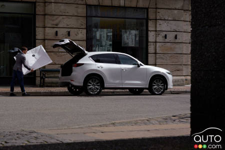 Beyond that, the GT version benefits from additional upgrades, notably with the Sport Appearance Package that endows the CX-5 with gloss black accents on the outside and red accents and stitching on the inside.
