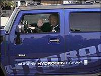 Unlike traditional fuel-cell technology, injecting liquid hydrogen into an internal combustion environment produces less than optimal power. Even with the assistance of a supercharger, the GM-designed 'Vortec 6000' 6.0-liter V8 produces a meager 180 horsepower when run on hydrogen, only a fraction of the 316 horsepower produced by the SUV's regular gasoline-swilling powerplant. In any respect, the hydrogen-powered H2H has a hands-down advantage over the regular H2, with the only tailpipe emissions emitted being water vapor.