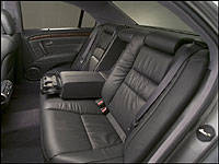 Aucun irritant de ce genre ne devrait affecter l'intérieur de la RL. Non seulement est-il dans une catégorie supérieure à celui de la version actuelle mais, il offre un luxe de façon positivement unique. Elle porte toujours certains traits de caractère comme la forme familière " T " en bois retrouvé sur le tableau de bord à l'horizontal et à la verticale, qui toutefois est présenté dans des tons foncés avec des garnitures de platine. Dans l'ensemble, l'aspect est moins austère et plus intime.