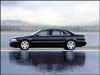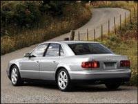Le châssis et la carrosserie de l'Audi reposent sur des trains roulants en aluminium. Déjà pourvues d'un potentiel d'adhérence exceptionnel grâce à leur transmission intégrale Quattro, ces berlines reçoivent un système d'antipatinage à l'accélération ESP qui corrige instantanément toute amorce de survirage - ou de sous-virage - en freinant de façon sélective la roue avant ou arrière intérieure au virage afin de rétablir la trajectoire idéale. Percevoir les limites d'un tel châssis sur route ouverte est désormais quasi impossible, et il peut être tentant de se laisser griser par un tel sentiment de sécurité. Heureusement, la sécurité passive n'a pas été oubliée avec... huit coussins gonflables de série - frontaux, latéraux et rideaux gonflables - aux places avant et arrière. Vous avez l'impression de rouler dans une chambre forte vissée au bitume tellement la tenue de route est bonne.