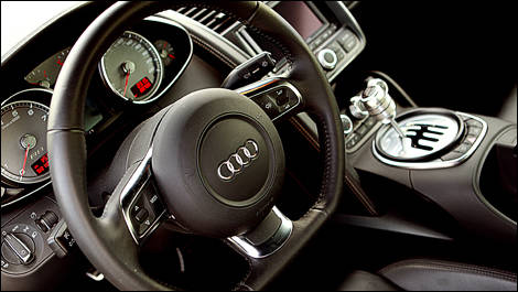 Embarquez dans la R8 et vous trouverez tout juste assez de place pour être confortable. Bon, d'accord, vous ne montez pas vraiment dans cette voiture, mais vous vous y glissez plutôt; en sortir est un peu plus acrobatique. Le conducteur profite d'une position de conduite parfaite, et les commandes sont habituellement bien placées.