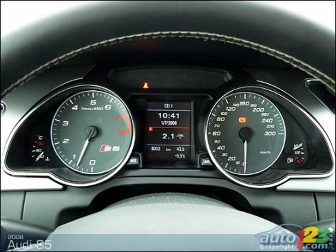 Habituellement, entre une chaîne de son et un puissant V8, c'est ce dernier qui remporte la faveur du conducteur. Or, le système Bang and Olufsen de la S5 rend la décision beaucoup plus ardue. Elle livre un son clair et vibrant qui donne l'impression d'être assis à côté de notre groupe de musique favori. Les basses sont excellentes et, par surcroît, on ne sent pas les panneaux intérieurs grincer. Que l'on écoute du Pink Floyd ou du 50 Cent, cette sonorisation est toujours fantastique.
