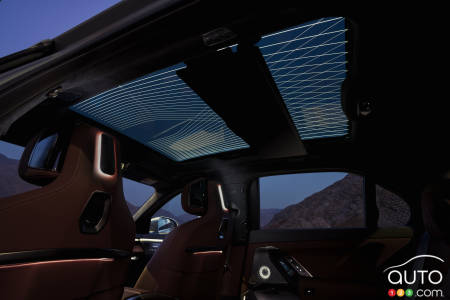 L'habitacle représente une rupture complète avec la tradition. Le tableau d'instruments conventionnel a disparu, remplacé par une unité centrale gérée par le système d'exploitation BMW X. Pour le conducteur, le nouveau système BMW Panoramic Vision projette les informations essentielles sur toute la largeur du pare-brise.