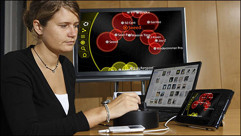 Les lecteurs portatifs et clés de mémoire ont une capacité de stockage de plus en plus grande de nos jours. Par exemple, le iPod Classic a une mémoire de 160 Go -- l'équivalent de 40 000 chansons. L’utilisateur aimerait bien pouvoir naviguer simplement et rapidement dans cet immense «juke-box» tout en conduisant. À l’avenir, ce sera possible grâce à MINI Music Map. Partout où il ira, le conducteur pourra traîner toute sa collection musicale avec lui.
