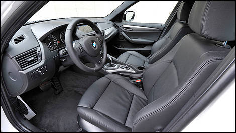 Le X1, bien évidemment, s'avère plus petit que le X3. Cependant, ne vous attendez pas à un intérieur serré – du moins, pas tant que ça. L'espace à l'avant est généreux et les sièges offrent un confort divin; je pourrais me faire conduire pendant toute la durée d'un voyage. Derrière le volant, c'est un peu différent. Le siège ne change pas, mais l'accélérateur m'a paru assez mal positionné. Je me suis assurée que mon pied droit reposait bien au centre de la pédale avant de constater que mon tibia et mon genou caressaient encore très langoureusement la moquette recouvrant le côté du bloc central. Bref, je me suis sentie plus à l'étroit que je ne l'aurais souhaité. Moi qui mesure à peine 5'2'', je ne vois pas comment un plus grand conducteur trouvera le moyen de placer ses jambes confortablement.