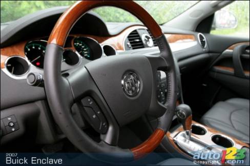 À l'instar de l'Acadia, l'Enclave présente un bel aménagement intérieur, incluant un tableau de bord bien pensé et pratique. Je dois absolument souligner l'agréable équilibre entre boiseries, garnitures en aluminium poli et surfaces en plastique douces au toucher. D'autre part, les sièges avant sont grands, douillets et confortables. Les deuxième et troisième rangées offrent un dégagement généreux pour les passagers; les sièges en tant que tel ne sont pas aussi apaisants que les baquets avant, mais ils demeurent plus qu'acceptables. En outre, les espaces de rangement sont nombreux et l'aire de chargement arrière est gigantesque quand on dissimule les places de troisième rangée. Enfin, l'assemblage et la finition sont en général de très bonne qualité.