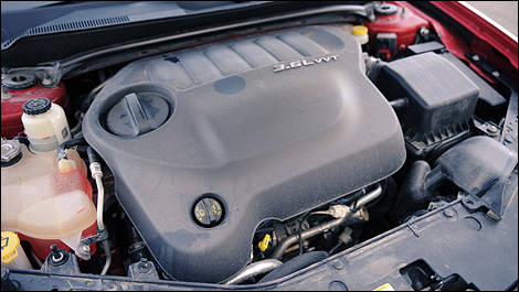 | Le Pentastar développe ici 283 chevaux et 260 livres-pied de couple (contre 235 et 232, respectivement, pour l'ancien V6). (Photo: Matthieu Lambert/Auto123.com) |
