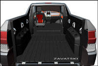 | Avec le "panneau intermédiaire" abaissé, la caisse de 5 pieds du Rampage s'allonge dans l'habitacle. (Photo: DaimlerChrysler Canada) |