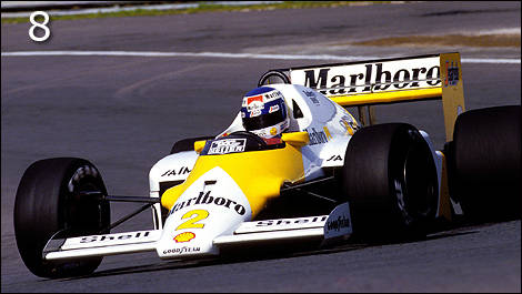 | 1986 McLaren MP4/2C – La McLaren à moteur TAG Porsche de Keke Rosberg était habillée d'une carrosserie où le rouge de Marlboro était remplacé par du jaune. En fait, Philip Morris avait décidé de faire la promotion des Marlboro Lights à cette occasion. |