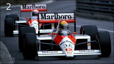 | 1988 McLaren MP4/4 – Conçue par Gordon Murray, la MP4/4 a remporté 15 des 16 Grands Prix en 1988, grâce à Ayrton Senna et Alain Prost. Sa ligne, extrêmement basse, permettait de mieux alimenter son aileron arrière. (Photo: WRI2) |