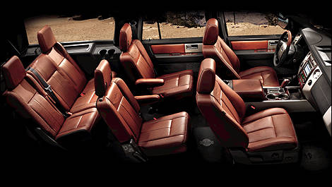 Conformément à sa fourchette de prix, le Expedition profite d’une longue liste de commodités de confort et de fonctionnalité de série et optionnelles, dont une suspension à correcteur d’assiette automatique, une troisième rangée de sièges électriques et rabattables, une chaîne de 600 watts et 14 haut-parleurs, un système de divertissement arrière, un toit ouvrant électrique et des sièges baquets arrière.