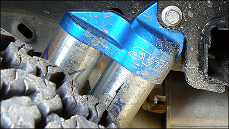 | Sur les chemins de terre, les amortisseurs spéciaux Fox Racing contrôlent admirablement les mouvements de la caisse. |