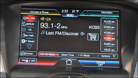 | Il me faudrait écrire un autre long article pour vous parler en détail de MyFord Driver Connect, de MyFord Touch, de SYNC et de leurs innombrables possibilités (comme lire et envoyer des textos). (Photo: Mathieu St-Pierre/Auto123.com) |