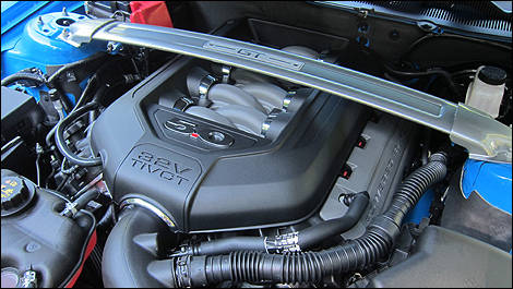 | Le V8 de 5,0 litres à 32 soupapes de la GT déploie ses 412 chevaux à 6 500 tours. (Photo: Rob Rothwell/Auto123.com) |