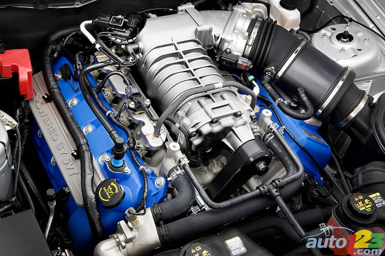 Pour 2011, la Shelby GT500 bénéficie également de certaines améliorations visant à limiter les niveaux de bruit et de vibration. Par exemple, le bruit provenant de la route a été réduit de 20 % grâce à l’ajout de matériel insonorisant de chaque côté du tableau de bord et derrière les panneaux intérieurs de même qu’à une nouvelle doublure à l’intérieur des passages de roues qui atténue le bruit sur les chaussées mouillées ou en gravier. Résultat : le conducteur entend moins la route et le vent et davantage le son du moteur et de l’échappement.
