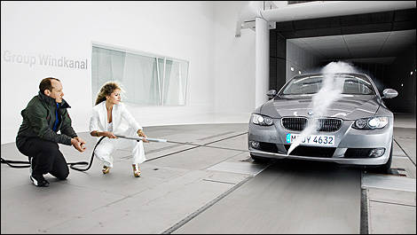 L’expérience de la coiffure illustre 22 ans de progrès en conception automobile. Des installations comme le nouveau centre d’essais aérodynamiques permettent aux ingénieurs du Groupe BMW d’améliorer les qualités aérodynamiques d’un véhicule, tôt en conception, afin de contribuer à augmenter l’efficacité toujours croissante des véhicules. En plus des transmissions et matériaux légers, l’aérodynamique jouera un rôle clé dans la fabrication des automobiles de demain. Des caractéristiques aérodynamiques sophistiquées représentent une des variables clés de l’approche « EfficientDynamics » du Groupe BMW. BMW est à l’avant garde de toute l’industrie automobile en matière de réduction des émissions de CO2. Dans l’UE, la nouvelle flotte 2008 du Groupe BMW produit en moyenne 156 g de CO2 par kilomètre, bien en deçà de tout autre constructeur de prestige.