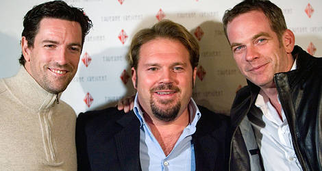 | Gino avec deux copains et conseillers, Patrice Brisebois et Garou. |