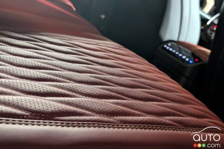 Malgré la ligne de toit fuyante, Infiniti soutient que le QX65 offre un espace fonctionnel compétitif. Contrairement au QX60, il n'y a pas de troisième rangée de sièges. Les sièges de la deuxième rangée sont conçus pour coulisser, s'incliner et se rabattre, permettant aux utilisateurs de moduler l'équilibre entre le rangement et le dégagement pour les jambes (et la tête) des passagers. Lors de notre séance de présentation, un représentant d'Infiniti a invité un journaliste à prendre place à l'arrière pour démontrer le dégagement à la tête. Ce journaliste, mesurant un peu plus de 6 pieds, a rapidement frôlé le plafond. Un léger glissement du siège vers l'avant a réglé le problème, mais il est clair que les personnes beaucoup plus grandes que la moyenne pourraient trouver la deuxième rangée du QX65 un peu contraignante, à moins de sacrifier de l'espace au niveau des jambes.