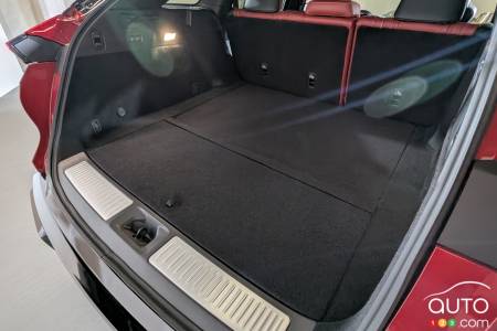 La capacité de chargement est évaluée à 1014 litres derrière la deuxième rangée (nous supposons que c'est avec les sièges reculés au maximum vers l'avant) ; c'est tout de même très généreux et considérablement plus que les 829 litres du Genesis GV80 Coupé. L'espace passe à 1917 litres lorsque les sièges arrière sont rabattus.