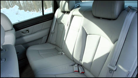 À l'arrière, les sièges extérieurs sont également chauffants, une caractéristique rare pour le prix demandé. Le véhicule offre énormément d'espace pour les occupants, et le dossier est sculpté pour assurer un meilleur confort. Le passager du centre ne sera pas à l'aise, par contre, l'assise étant gâchée par le coussin dur et l'appui-bras rabattable.
