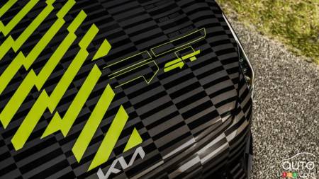 En revanche, comme on peut le remarquer en portant une attention particulière aux images, la voiture est décorée d’une pellicule dont le style est quelque peu flamboyant. Cette stratégie se différencie de ce que les autres constructeurs font généralement lorsque vient le temps de présenter un aperçu d’un véhicule à venir, c’est-à-dire le recouvrir de camouflage. On note aussi que la pellicule décorative intègre la teinte vert lime, qui est typique des véhicules électriques de la famille GT.