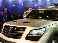 En y regardant de plus près, ces saillies sont en fait des marchepieds rétractables, réalisés par la firme Algonquin. Ils simplifient l'accès à la galerie pour le chargement tout en facilitant les entrées et sortie. Évidemment cette idée n'est pas nouvelle car Lincoln a déjà équipé la Navigator de cette caractéristique. Comme dans la Navigator, ces marchepieds se déploient automatiquement lorsqu'une porte s'ouvre et se remettent en place à la façon d'un train d'atterrissage lorsque la porte se referme. Pourquoi se donner tout ce mal? C'est simple, en se rétractant, les marchepieds sont protégés et ne seront pas endommagés lors des escapades hors route.