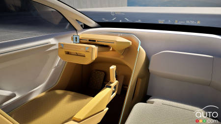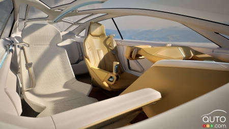 À l’intérieur, le concept se veut plus « salon high-tech » que simple habitacle automobile. Le traditionnel volant disparaît au profit d’un demi-volant ou d’un volant en forme de D, devant un immense pare-brise panoramique et un affichage tête haute en réalité augmentée. L’habitacle propose différents modes numériques baptisés Speedster, Dreamer ou Gamer, qui ajustent l’ambiance selon que le conducteur privilégie la performance, le confort ou le divertissement.