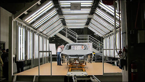 À l’intérieur, l’usine est propre et bien éclairée, libre des odeurs auxquelles on pourrait s’attendre dans de telles installations. On a mis l’accent sur l’efficacité écologique, la majorité des procédés répétitifs étant effectués par des robots. Des chariots électriques chargés de pièces et de matériaux circulent silencieusement sur des rails, beaucoup plus efficaces et propres que les chariots à fourche traditionnels. Aucun pas n’est gaspillé : les travailleurs suivent un chemin tracé au sol lors de tâches complexes, et les chaînes de montage sont bâties à une hauteur confortable qui permet toutefois d’économiser les mouvements.