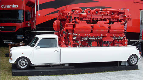 Lors d’une exposition précédente, quelqu’un avait demandé tout bonnement à la compagnie si son plus gros moteur à vie, le QSK78, qui pèse plus de 11 tonnes, pouvait être installé dans une MINI.
