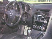 Une fois installé, le conducteur de la Mazda aura droit à l'ambiance la plus sportive : sièges baquets avec incrustation d'un motif rappelant le rotor du moteur, grand compte-tours central et console centrale au design original. La position de conduite est excellente, sauf pour l'assise un peu trop souple qui s'affaisse dans les virages prononcés.
