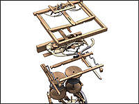 Des lignes d'encre sur un parchemin, le modèle de de Vinci a réussi à se matérialiser... et à fonctionner! Le long et ardu processus pour en arriver à un tel résultat a cependant pris de nombreuses années. Après la découverte du croquis en 1905 par un érudit italien du nom de Girolamo Calvi, 70 ans ont été nécessaires pour que quelqu'un assemble les ressorts, les bobinages et les tambours tel qu'illustré, et ce, sans que le tout tombe en morceaux.