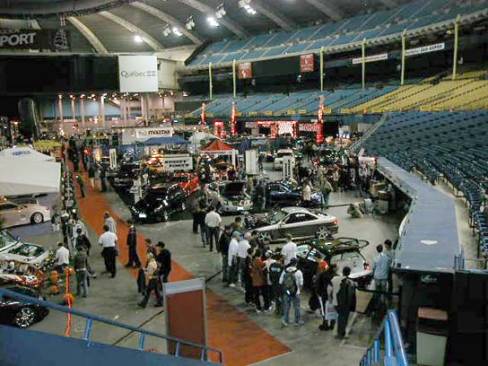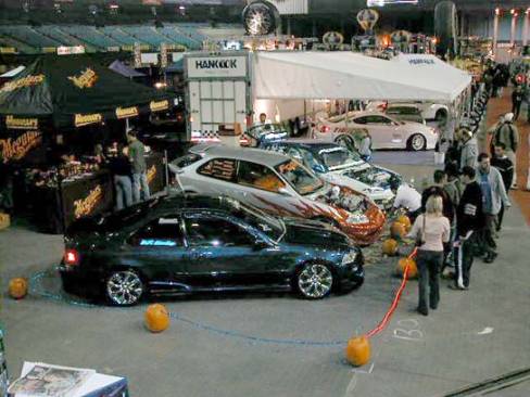 Tuning123 y était également présent. Une énorme cage d'acier, à laquelle étaient accrochées quelques boules en miroirs, entourait les voitures. Un puissant système audio, un écran géant et quelques jolies demoiselles en tenues légères étaient sur place afin de divertir les passants.
