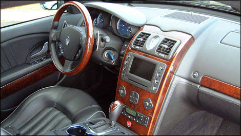 La « grande séduction » se poursuit à l'intérieur qui révèle un habitacle chaleureux et confortable. Si la finition n'est pas toujours à la hauteur des meilleures productions allemandes ou japonaises, il n'en demeure pas moins que les cuirs sentent bon, et que le « mobilier » respire le bon goût, jusqu'à la belle montre ovale qui trône au centre du tableau de bord. D'ailleurs, comme c'est le cas de toutes les voitures de grand luxe, il vous est possible de personnaliser votre Quattroporte en choisissant la finition préférée sur un copieux menu. Quelques bémols cependant au chapitre de l'ergonomie, notamment le lecteur de CD caché sous la colonne de direction et cet irritant cliquetis qui semblait émaner de la porte.
