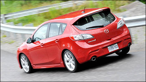 | Malgré ses performances somme toute très impressionnantes, la Mazdaspeed3 reste assez docile pour l'usage quotidien. (Photo: Matthieu Lambert/Auto123.com) |