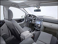 Contrairement à bien des véhicules concepts, qui arborent des styles et des arrangements futuristes de même que des gadgets électroniques jamais vus, la Vision B est tout à fait terre-à-terre. Oubliez des sièges en microfibre à l'épreuve de l'eau ou de la tapisserie en cuir à la grandeur des surfaces - même le plancher. On retrouve tout simplement un habitacle réaliste et fonctionnel, joliment conçu et décoré avec soin. Une majorité de composantes intérieures, incluant la console centrale, les portières, les sièges en tissu deux tons ainsi que le tableau de bord, ont été directement transposées de la Classe A.