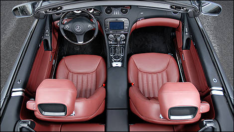 La cabine de la SL est merveilleusement exécutée, ce qui n'est pas surprenant si l'on tient compte des mensualités qui font des ravages sur un compte bancaire. L'agencement des couleurs charbon et rouge brique est particulièrement joli.