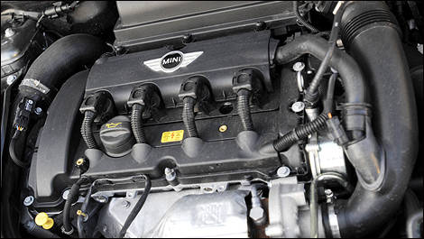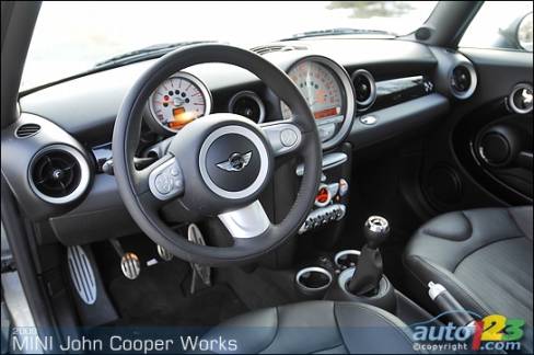 John Cooper Works, ce n'est surtout pas que des bonbons pour les yeux, c'est aussi de la belle mécanique. Le moteur est porté à une puissance de 208 chevaux par comparaison avec 172 pour les versions régulières « S ». Ce gain de 36 chevaux peut sembler anodin, mais il fait toute une différence considérant le format de la voiture. Le groupe motopropulseur est certainement dynamique puisque les accélérations de 0 à 100 km/h se font en près de 6,5 secondes. De plus, elle est économique avec une consommation moyenne d'environ 7,9 litres aux 100 kilomètres.