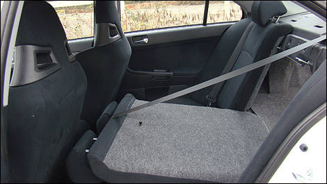 | La présence de sièges arrière divisés rabattables, ainsi que d’un coffre en font une meilleure compagne de route que la EVO. |