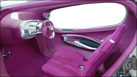 L’habitacle de la POP propose de nombreuses commodités très futuristes. Ainsi, tout juste derrière le volant se dresse un écran à DEL transparent sur un petit morceau de plexiglas. Il affiche un tachymètre, le degré de charge de la batterie et autres informations cruciales. L’habitacle entier est drapé d’une seule couleur, et ce cocon semble tout droit sorti d’un vaisseau spatial.