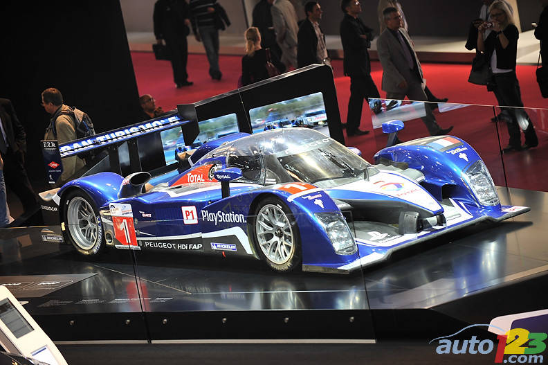 Peugeot expose la 908 HDI FAP qui a remporté les 24 Heures du Mans l’an dernier. Ce bolide à moteur turbo diesel, qui date déjà de plusieurs saisons, arrive quand même à battre régulièrement la fameuse et nouvelle Audi R15.