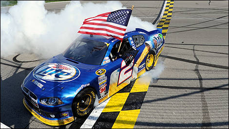 Keselowski a pris la tête pour de bon avec dix tours à faire quand son coéquipier chez Penske, Kurt Busch, parti de la pôle, a dû ravitailler. Pour l’écurie Penske Racing, il s’agissait d’une première victoire en Coupe Sprint depuis Charlotte 2010.