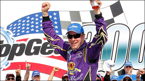 Kenseth, qui remplaçait le vainqueur du Daytona 500, Trevor Bayne, a effectué un dernier ravitaillement durant l’épreuve et a doublé le meneur, Carl Edwards, son coéquipier chez Roush Fenway Racing, pour récolter la victoire au Top Gear 300.