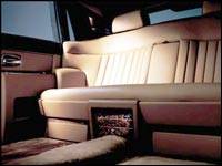 Outre l'éclairage spécial, le lecteur DVD avec écran ainsi que le mini-réfrigérateur, la nouvelle Phantom se démarque par sa cloison pleine entre les sièges avant et arrière. Ce mur séparateur en contreplaqué est garni du cuir le plus fin qui soit; il comprend au centre une lunette transparente. Autre point inusité, la Phantom peut être commandée en 45 000 différentes couleurs!