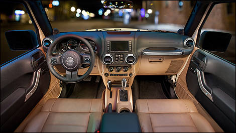 Parmi les nouvelles caractéristiques intérieures du Jeep Wrangler 2011, soulignons l’instrumentation redessinée, les matériaux de meilleure qualité et l’ajout de compartiments de rangement. Une nouvelle console verrouillable et de meilleurs accoudoirs dans les portières rehaussent le confort, tandis que le bloc de commandes redessiné s’avère plus facile à atteindre et à utiliser. Des miroirs électriques chauffants sont désormais disponibles et ils s’accompagnent de vitres arrière plus grandes afin d’offrir une visibilité améliorée.