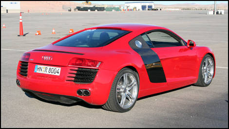 La R8 se révèle très douce en conduite urbaine et facile à diriger. Sur l'autoroute, le moteur ne fait que murmurer, gardant l'habitacle très silencieux : elle peut atteindre aisément les 200 km/h. Sur les routes secondaires, la R8 donne son meilleur au pilote. Elle colle littéralement à la route. L'arrière glissera très légèrement dans une courbe serrée, mais les énormes pneus de 18 pouces la rivent aussitôt à la chaussée. Elle enfile les courbes à vive allure. Son freinage rassure l'intrépide. Je connais peu de voitures capables de satisfaire autant un conducteur. Les huit journalistes canadiens présents étaient unanimement ravis de ses qualités routières. Elle fait tout très bien, en ville comme sur la route.