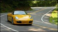 pour de telles voitures : Tail of the Dragon ou la route en queue de dragon. Imaginez 318 virages sur une distance de 17,7 kilomètres. Nous faisions l'aller en Boxster et le retour en Boxster S. Un pur délice de conduite sportive. Si la Boxster se révèle très habile, la S la surpasse, grâce à ses reprises. Dans les deux cas, j'ai pu enlever le système PSM (Porsche Stability Management) qui contrôle l'antipatinage et le système de freinage antiblocage, ce qui a permis à la voiture de mieux négocier les sorties très serrées des virages, les épingles et les S. Virage après virage, on fait corps avec la voiture. Même mon passager y a trouvé plaisir. On se serait pensé dans un manège en serpentin. Nous avons également eu droit à une route à voies divisées pour conduire, à nos risques, les voitures à des vitesses élevées, ce qui nous a permis de confirmer la grande stabilité de ces sportives.
