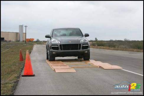 Sur une chaussée détrempée, l'adhérence se trouve nettement améliorée et, sur une route de gravier, le contrôle du véhicule change du tout au tout : il devient prévisible, doux et rassurant. Nous en avons la preuve sur un circuit détrempé et sur une route de gravier du type chantier de coupe de bois. Cette dernière épreuve a coûté plusieurs jeux de pneus à nos hôtes, car le revêtement était sans merci pour les Michelin Pilot qui chaussaient nos Cayenne Turbo. Ces Michelin sont conçus pour une utilisation routière et non pour une utilisation hors route si rude.