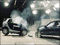 Comment une voiture aussi petite peut demeurer résiliente aux collisions? C'est qu'au moment de l'impact, la "cellule de sécurité tridion" faite d'acier haute résistance absorbe le choc du véhicule ou de l'objet stationnaire qui entre en contact avec la fortwo. De plus, la cellule est renforcée de traverses et de tubes d'absorption qui servent de zones de déformation et qui veillent à ce que la voiture reste intacte". La fortwo cabriolet comporte une robuste barre anti-tonneau en acier qui lui permet de mieux résister à la torsion ainsi que deux caissons anti-collision : celui à l'avant est renforcé de traverses et de tubes d'absorption, tandis que celui à l'arrière l'est par un support en aluminium. De concert avec les panneaux de carrosserie en polycarbonate, ces caissons absorbent pratiquement sans dégât les collisions à moins de 3 km/h. Jusqu'à 15 km/h environ, ils servent de zones de déformation et veillent à ce que la fortwo reste intacte. Les roues sont également capables d'absorber un impact et, grâce à un renfort en aluminium résistant dans les portières, celles-ci peuvent être ouvertes après une collision.